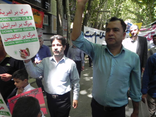 راهپیمایان، مسیر میدان شهدا تا مصلا الغدیر خرمآباد را با سر دادن شعارهای «مرگ بر اسرائیل»، «مرگ بر آمریکا»، «مرگ بر انگلیس» و مرگ بر آل سعود خائن، طی کردند.