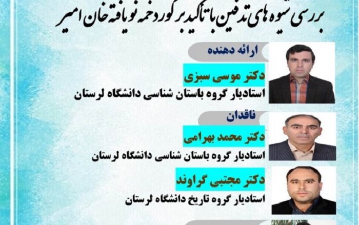 کرسی علمی، ترویجی با موضوع «بررسی شیوههای تدفین با تأکید بر گور دخمه نو یافتهخان امیر»، برگزار میشود.