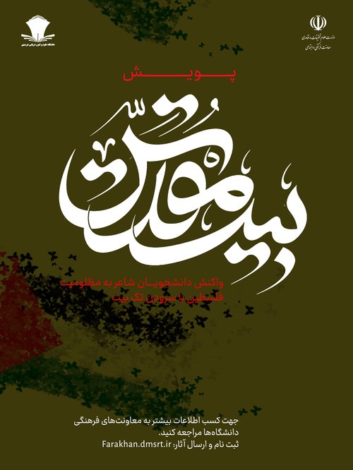 مدیریت پشتیبانی امور فرهنگی و اجتماعی وزارت علوم، تحقیقات و فناوری اعلام کرد مهلت ثبت نام در پویش طوفان الاقصی (واکنش هنرمندان هنرهای تجسمی به مظلومیت فلسطین) و پویش تک بیت (شعر) برای فلسطین با عنوان «بیت مقدس» تا پایان آبان ماه سال جاری تمدید شد.