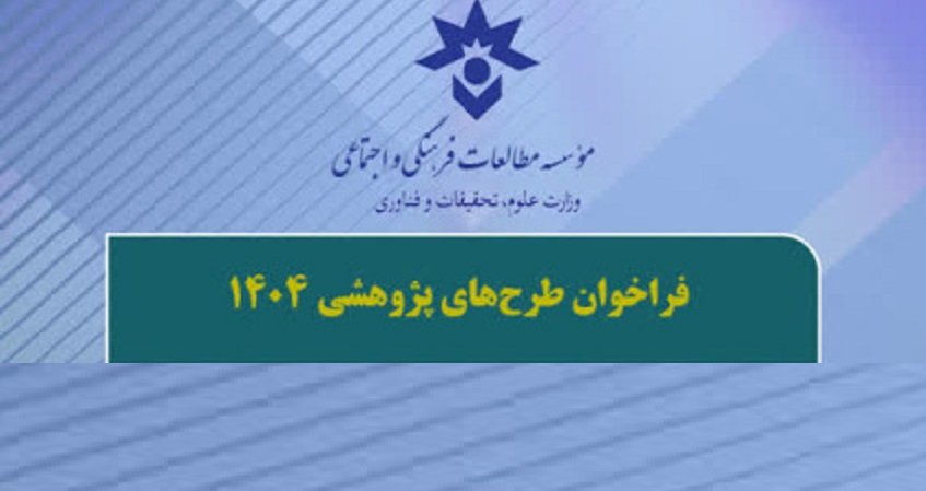 مؤسسه مطالعات فرهنگی و اجتماعی وزارت علوم، تحقیقات و فناوری، اعلام کرد مهلت ارسال طرحهای پژوهشی سال ۱۴۰۴ این مؤسسه تا تاریخ ۳۰ مهرماه ۱۴۰۴ تمدید شد.