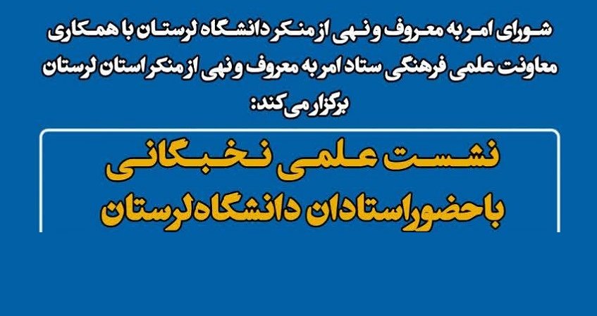 شورای امر به معروف و نهی از منکر دانشگاه لرستان با همکاری معاونت علمی فرهنگی ستاد امر به معروف و نهی از منکر استان لرستان، نشستی علمی و نخبگانی را با محوریت «تأثیر معنوی امر به معروف و نهی از منکر بر اصلاح اخلاق فردی و اجتماعی» برگزار میکند.