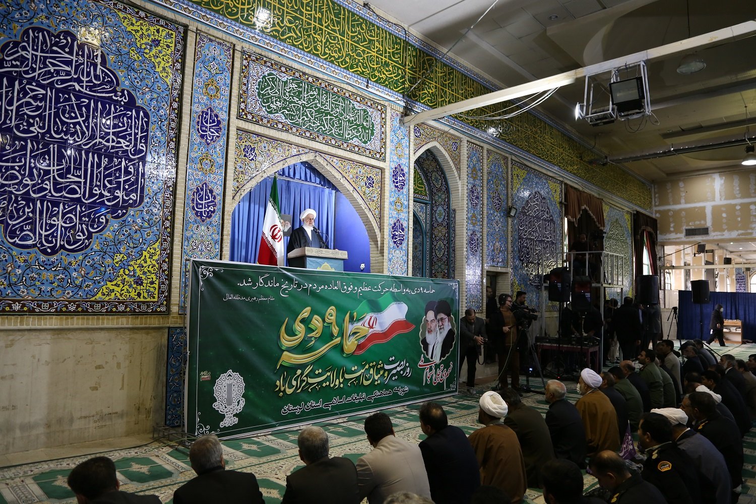 در این مراسم، حجتالاسلام والمسلمین احمدرضا حاجتی، سخنران آیین، با تأکید بر اهمیت پیروی از ولایت فقیه، ایستادگی در برابر دشمنان داخلی و خارجی را یکی از مؤلفههای اصلی حفظ عزت و اقتدار کشور دانست.